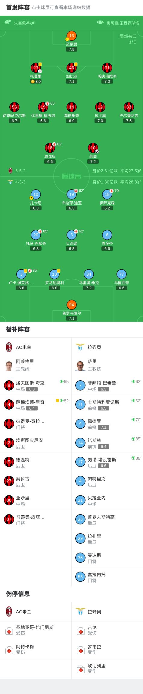 TAG / 关键词  拉齐奥  剑南春  罗马尼奥利  米兰博洛尼亚  菲卡约·托莫里  莱奥·巴普蒂斯唐  马西米利亚诺·阿莱格里  米兰1-0拉齐奥先赛暂登顶